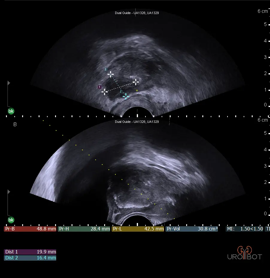 Die Probeentnahmen erfolgen in Zusammenarbeit mit der Klinik für Radiologie. Inzwischen gibt es dafür eigens eingerichtete Slots für die standardisiert durchgeführten MRT-Untersuchungen und für die ebenso standardisierte und in Narkose durchgeführte Biopsie. Letztere erfolgt im Übrigen in Kombination mit einem Standard-Biopsie-Schema und wird durch den Damm in Narkose durchgeführt. Dadurch wird im Übrigen auch die biopsieassoziierte Infektionsgefahr reduziert.