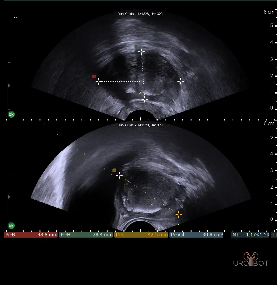 Es handelt sich bei dieser Untersuchung um eine Ultraschalluntersuchung der Prostata. Dafür wird ein stabförmiger Ultraschallkopf in den Enddarm des Patienten eingeführt. Die Untersuchung kann in Seitenlage oder in Steinschnittlage durchgeführt werden. Mit der speziellen Ultraschallsonde kann die Prostata gleichzeitig längst und quer dargestellt werden. Beurteilt werden:
